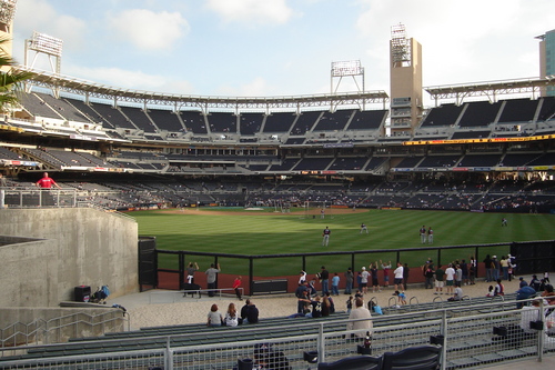 ple tossing wiffle balls to the little ones. TVs are all over the stadium most of which are plasma in high definition TVs. The food is great there. There are plenty of big screens so no one gets left out of seeing that. The field also has an old building that was built into the ballpark and believe it or not into the field of play. The left filed foul pole is the edge of that old building. In addition to all this they have a sand pit which Padres fans call "the beach" right behind the fence in center field. No doubt these guys thought of everything.