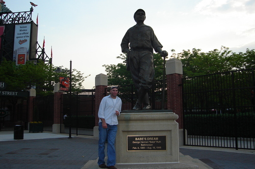 After the game we went to look for Babe Ruth’s birthplace. we followed the baseballs on the road wich start at the Babe Ruth statue outside the park in Centerfield. The walk was only about 2 blocks. We got there and ch