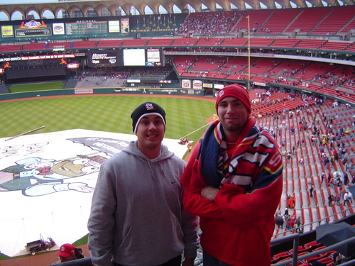 Our next stop brought us into Cleveland for a Sunday afternoon game between the Indians and the Royals. Kevin and I went into this game expecting to see a minor league game because these two clubs aren’t playing the best baseball lately. Much to our surprise both teams brought their bats and hit 5 home runs. Mark Sweeny ended the Indians hopes of a comeback with his second homer and the Royals won 6-5. Jacobs field is a very fan friendly ballpark. Every Sunday is kids day at the park and they have every type of food you can imagine. The park is located just off the freeway and parking is great. The ballpark is right downtown and located right off the freeway.